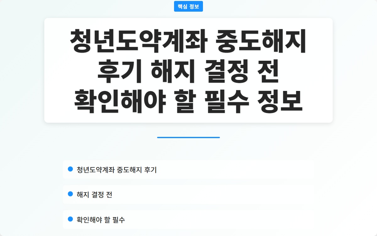 청년도약계좌 중도해지 후기 해지 결정 전 확인해야 할 필수 정보 바로가기