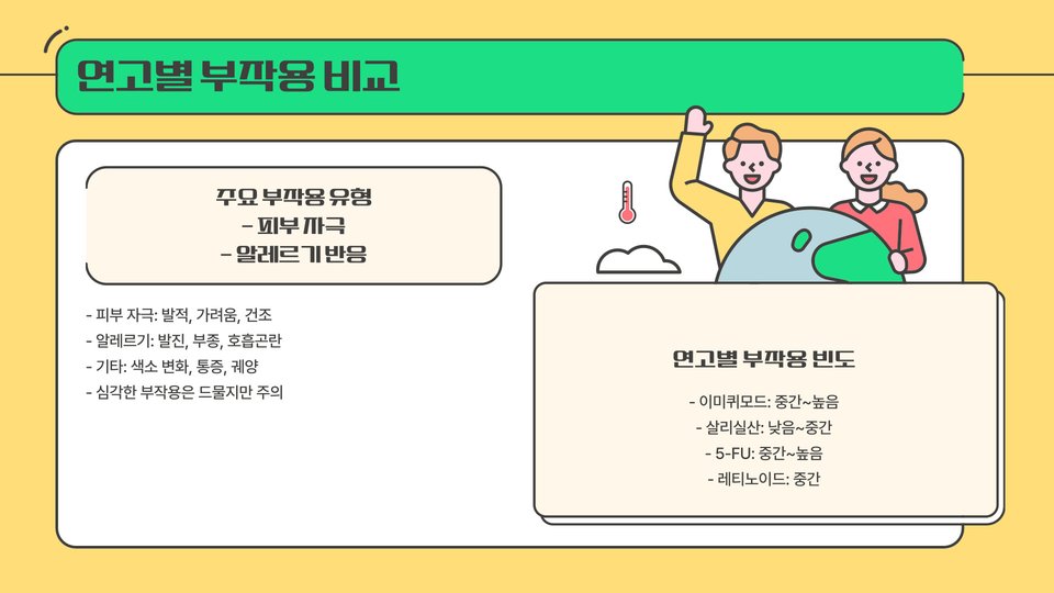 | 레티노이드 연고 | 빠른 효과를 볼 수 있음 | 피부 자극 가능성 |